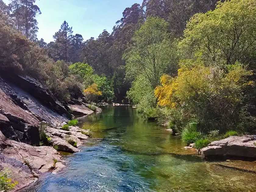 - Pozas de Mougás: Algo más apartadas, combinan pozas profundas con toboganes naturales esculpidos por el río; favoritas de los amantes de la aventura.